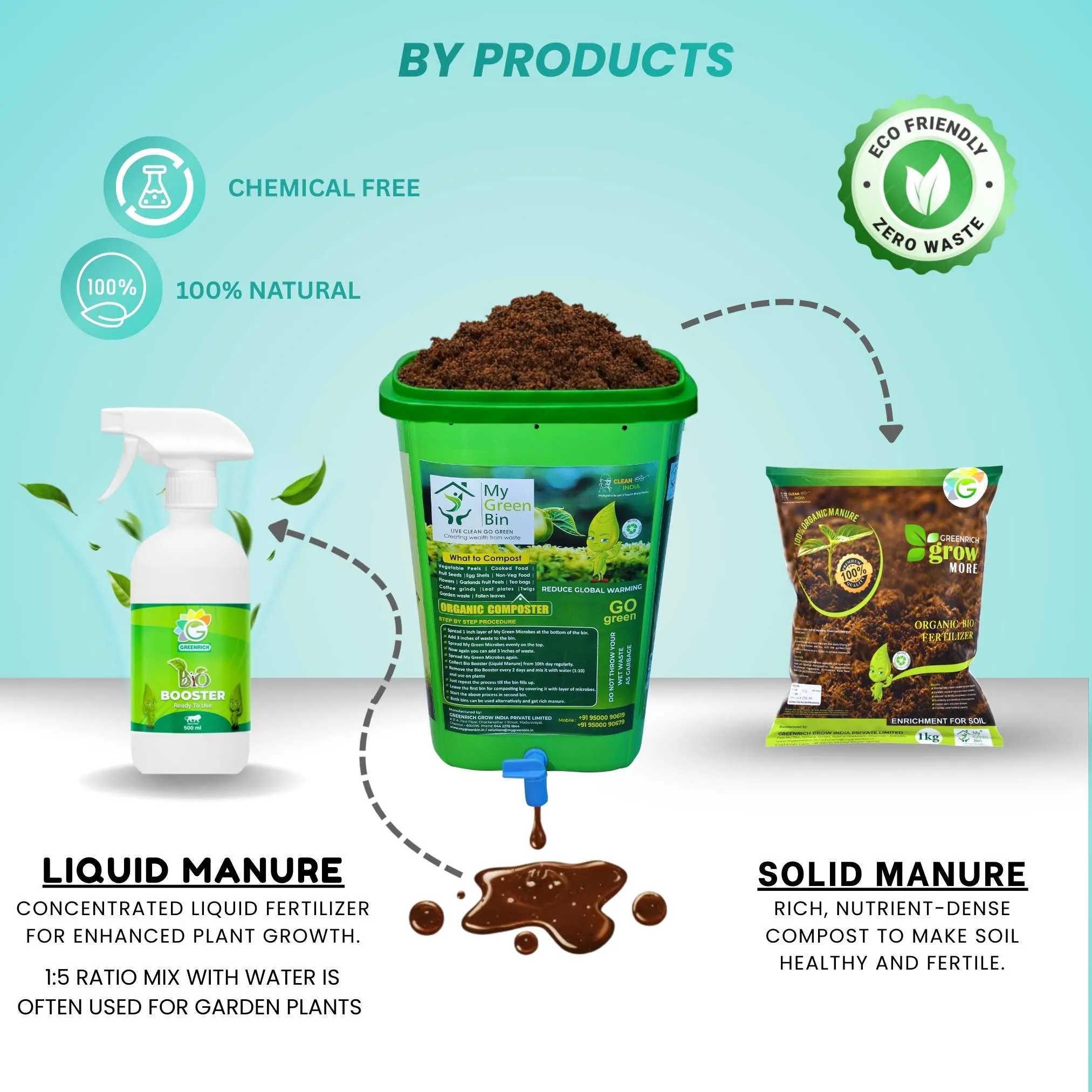 After that, mix the leachate with water in a 1:10 ratio and use it as a Bio Booster for your plants.