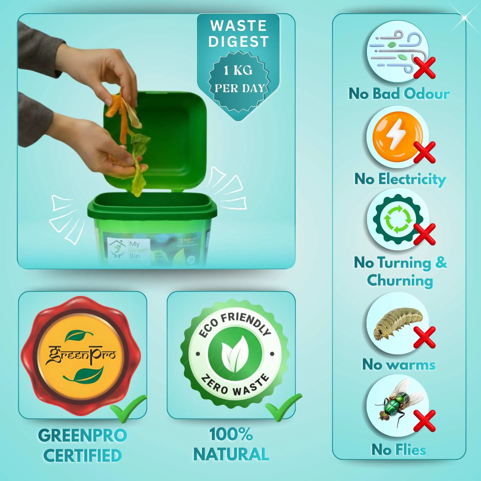 👪 Family Size Option Available – For households of 4-5 members, with each bin handling up to 1 kg/day.