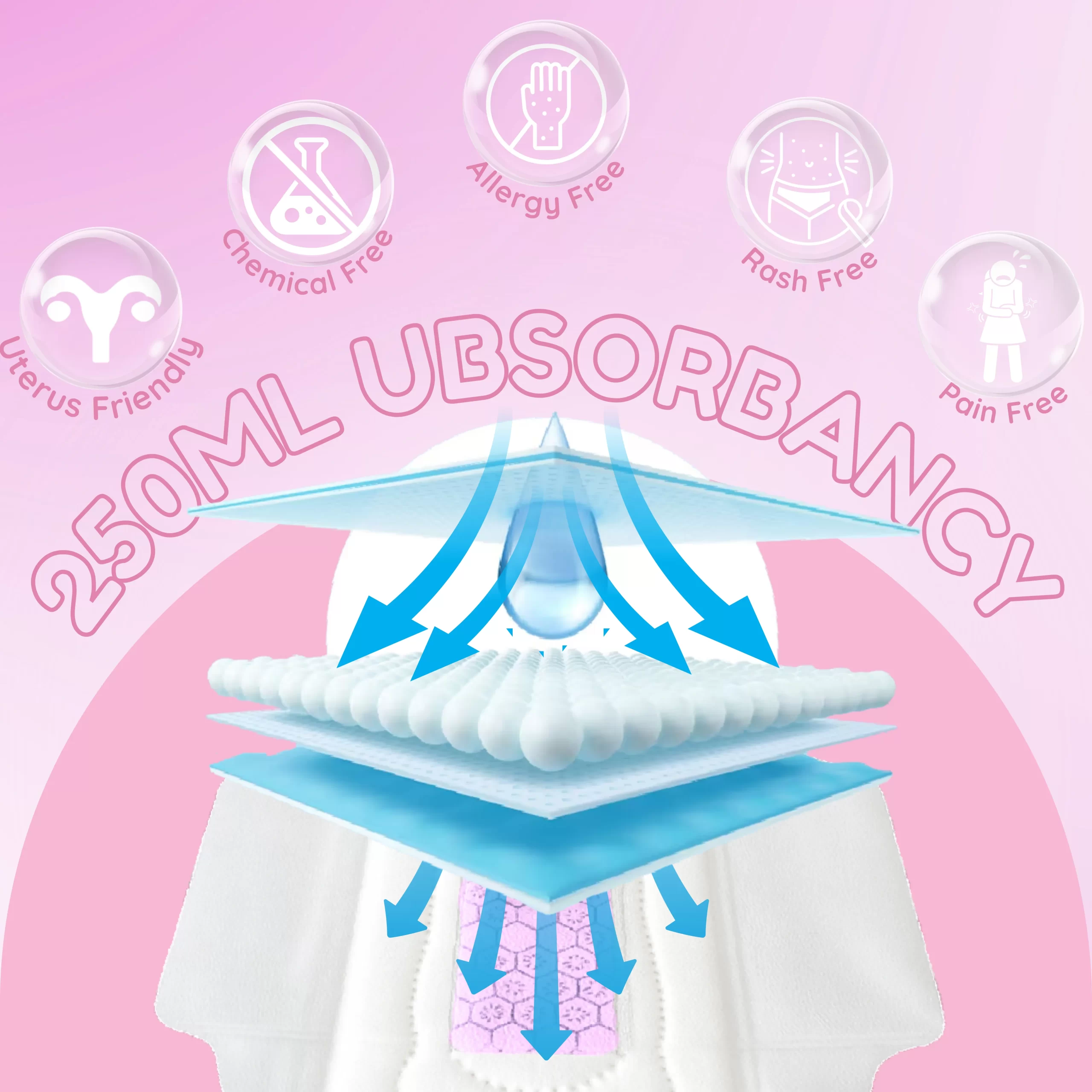 Result: a pad that doesn’t just manage flow—it supports your comfort, hygiene, and confidence, every day and night.