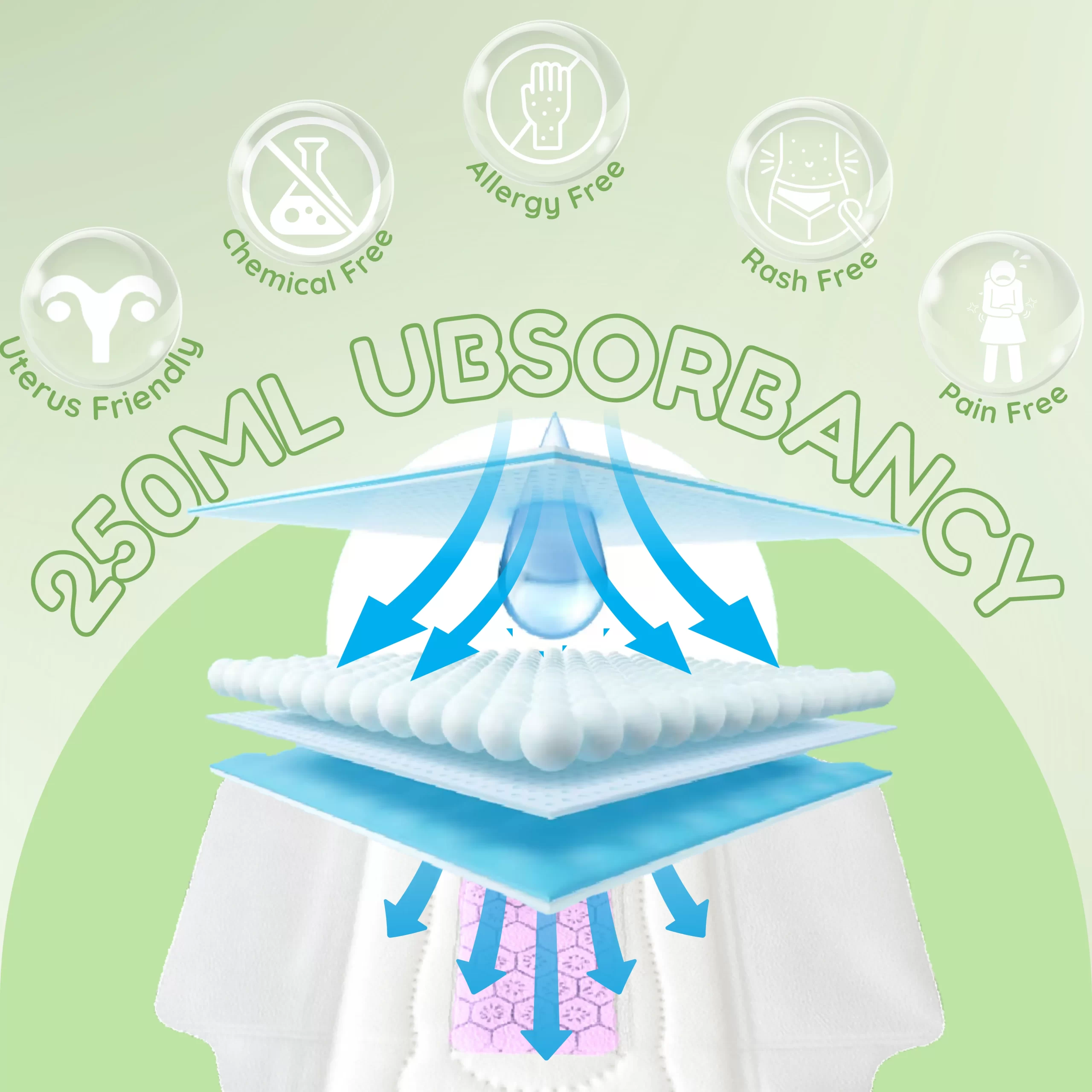 Result: a pad that doesn’t just manage flow—it supports your comfort, hygiene, and confidence, every day and night.