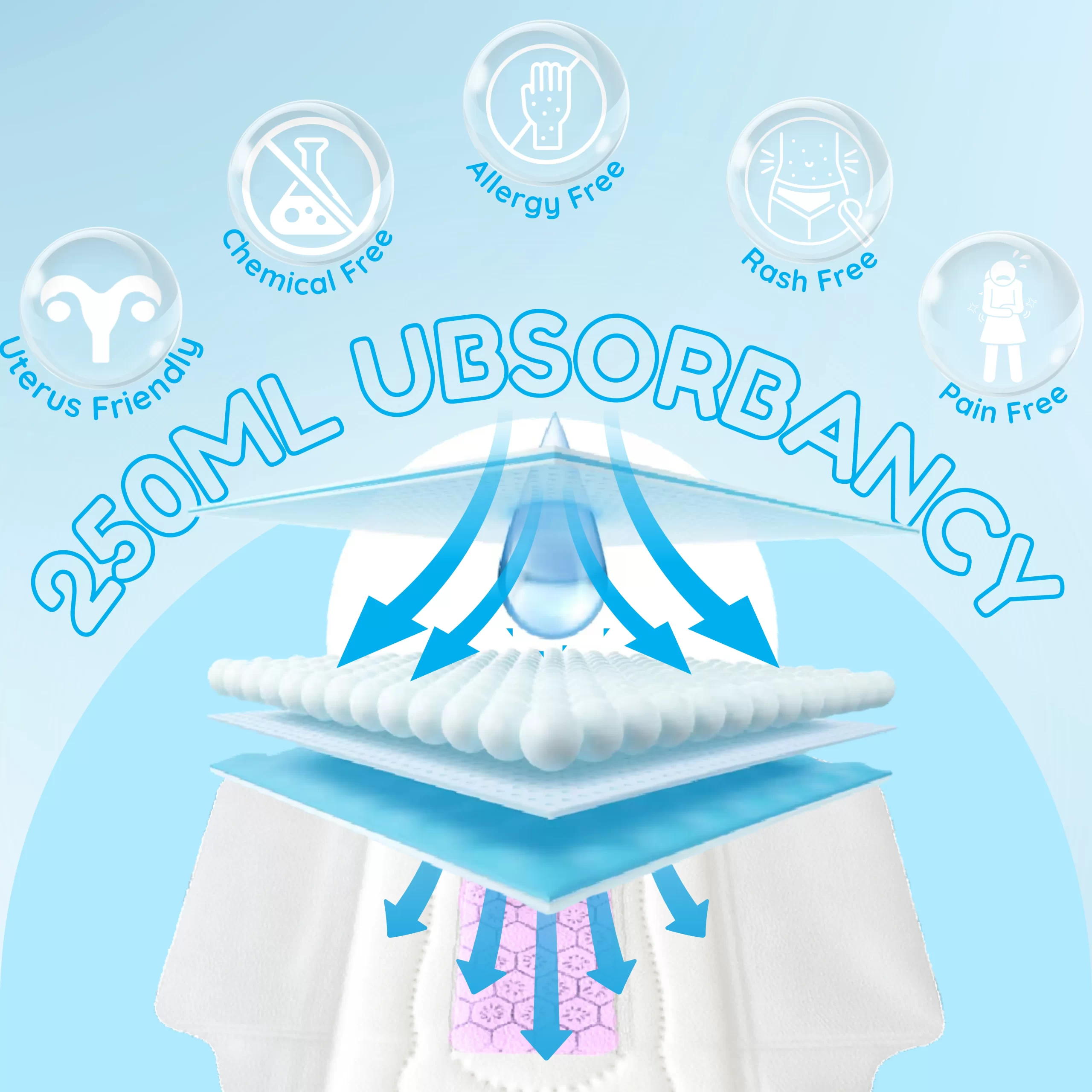Result: a pad that doesn’t just manage flow—it supports your comfort, hygiene, and confidence, every day and night.
