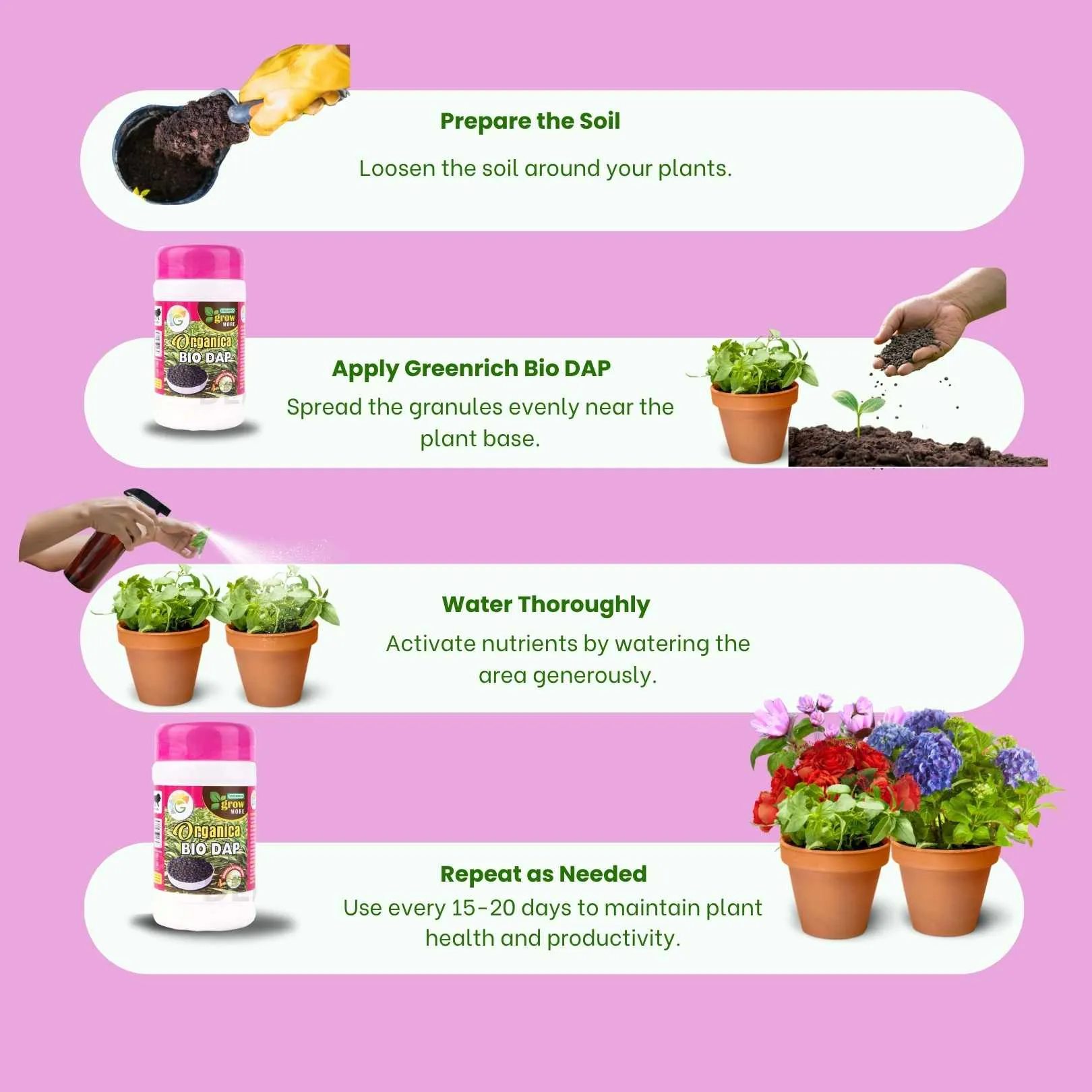Whether you’re cultivating crops on a large-scale farm or nurturing a home garden, Green Rich Bio DAP is a reliable, organic solution for sustained plant health and higher yields.